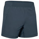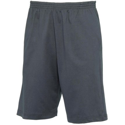Sport shorts. Knee-length. Elasticated waistband. 2 side pockets and one back patched pocket. Bottom hem with double top stitching. Side seams.